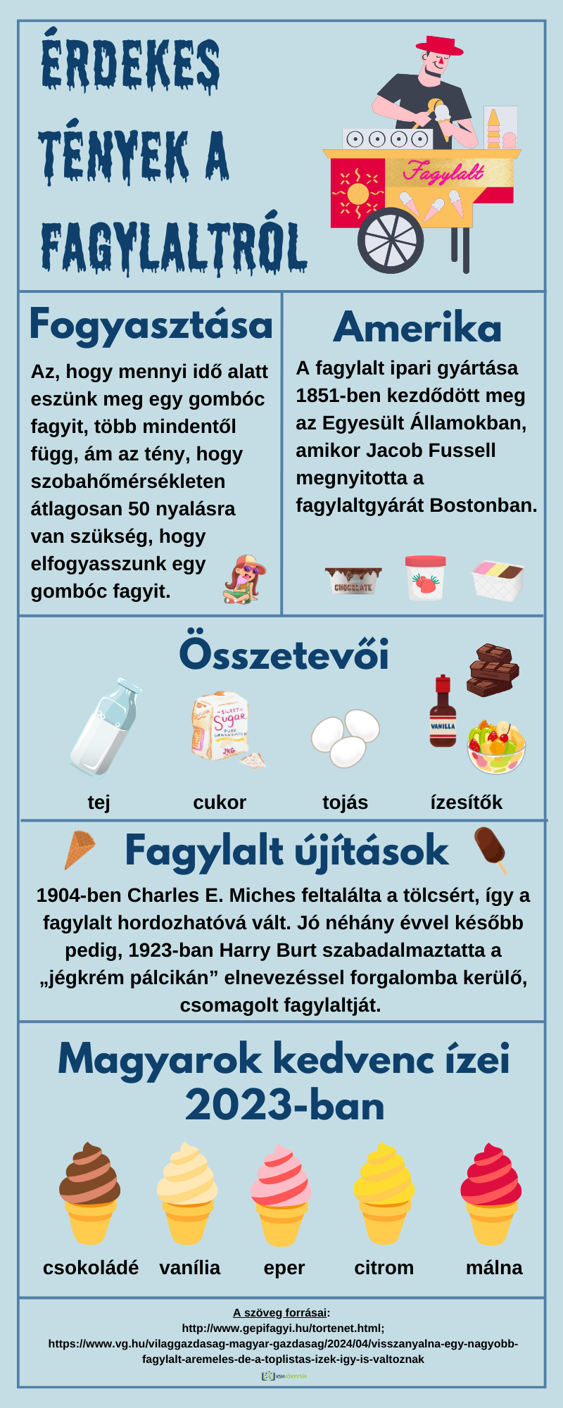 A nagy melegben jólesik egy finom fagylaltot elnyalni. Azt tudtátok, hogy átlagosan 50 nyalásra van szükség, hogy elfogyasszunk egy gombóc fagyit? További hasonló érdekességekért nézzétek meg az infografikát!