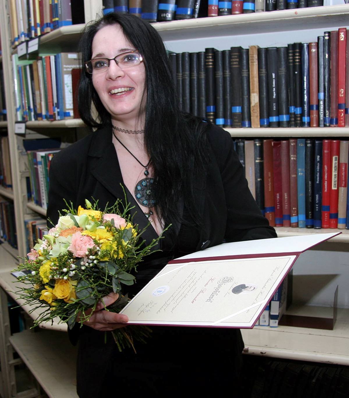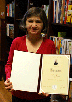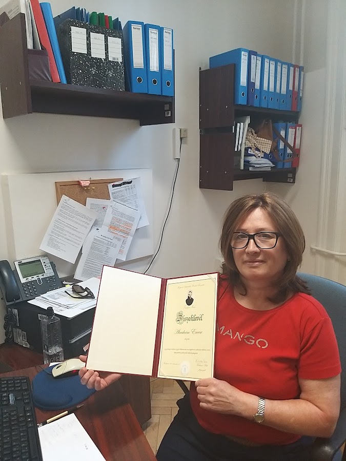 Könyvtárunk titkárságvezetője „a mindenkori könyvtárvezetés munkájának kimagasló színvonalú, példás lelkiismeretességgel végzett támogatásáért, a könyvtári munkafolyamatok megtervezésében, hatékonyabbá tételében nyújtott segítségéért” vehette át az elismerést.