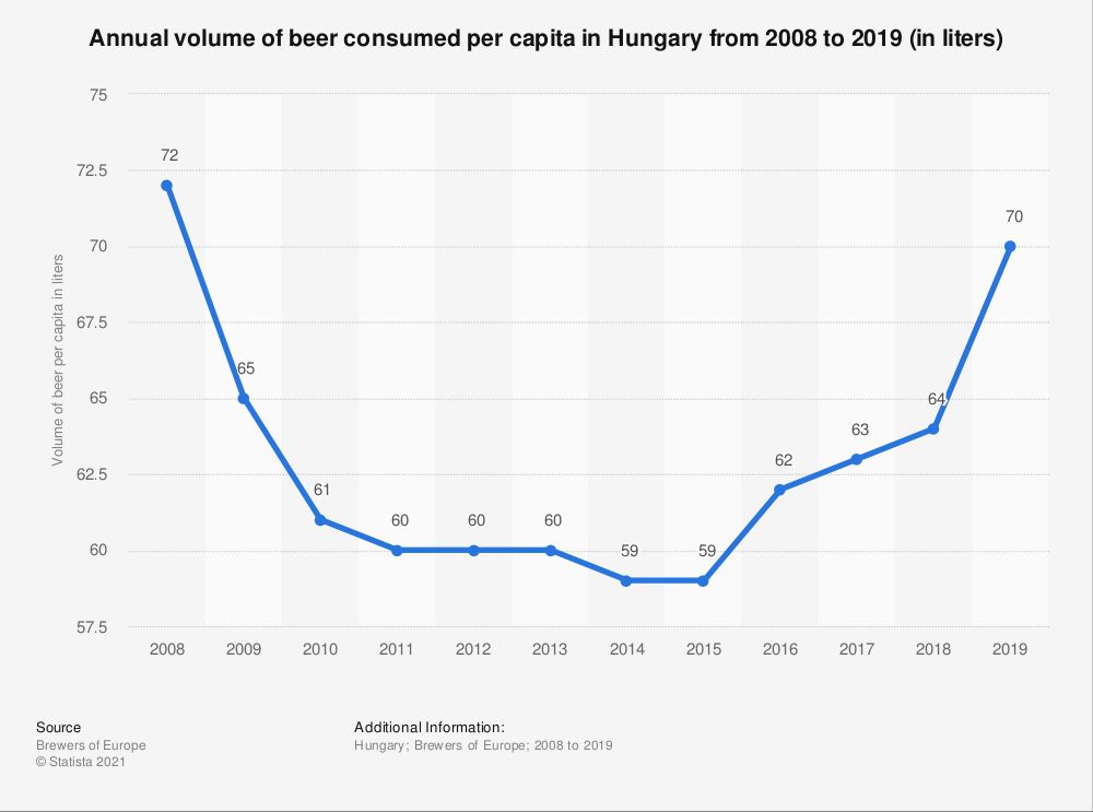 A hazai sörfogyasztáshoz kapcsolódó érdekesség, hogy az egy főre jutó sörfogyasztás a 2008-tól 2015-ig tartó időtartamban folyamatosan csökkent. Míg 2008-ban fejenként évente 72 liter sör fogyott Magyarországon, addig az egy főre jutó fogyasztás mélypontja 59 liter volt évenként. A fogyasztás csökkenő mértéke azóta megtorpant. A legutóbbi, 2019-es rendelkezésünkre álló adat már évi 70 literes fejenkénti sörfogyasztást mutat. A megközelítőleg hét éves zuhanás vélhetően a 2008-tól kiterjedt gazdasági világválságnak tudható be, ebből a recesszió enyhülésével és a kézműves sörök széles körben emlegetett forradalmával sikerült kilábalni.