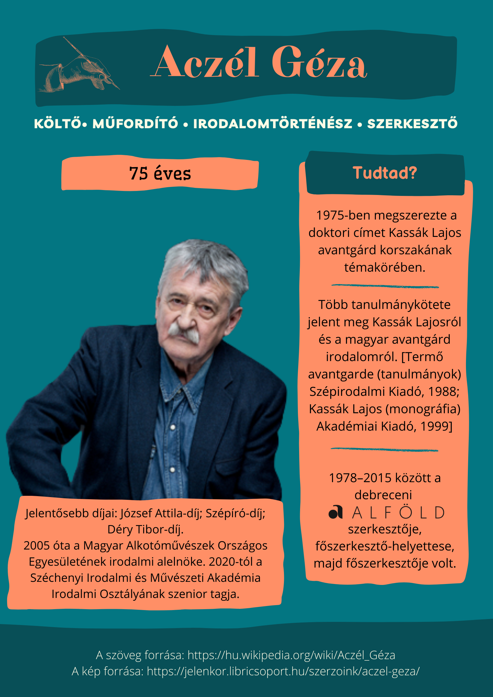 75 éve született Aczél Géza magyar költő, műfordító, szerkesztő, irodalomtörténész