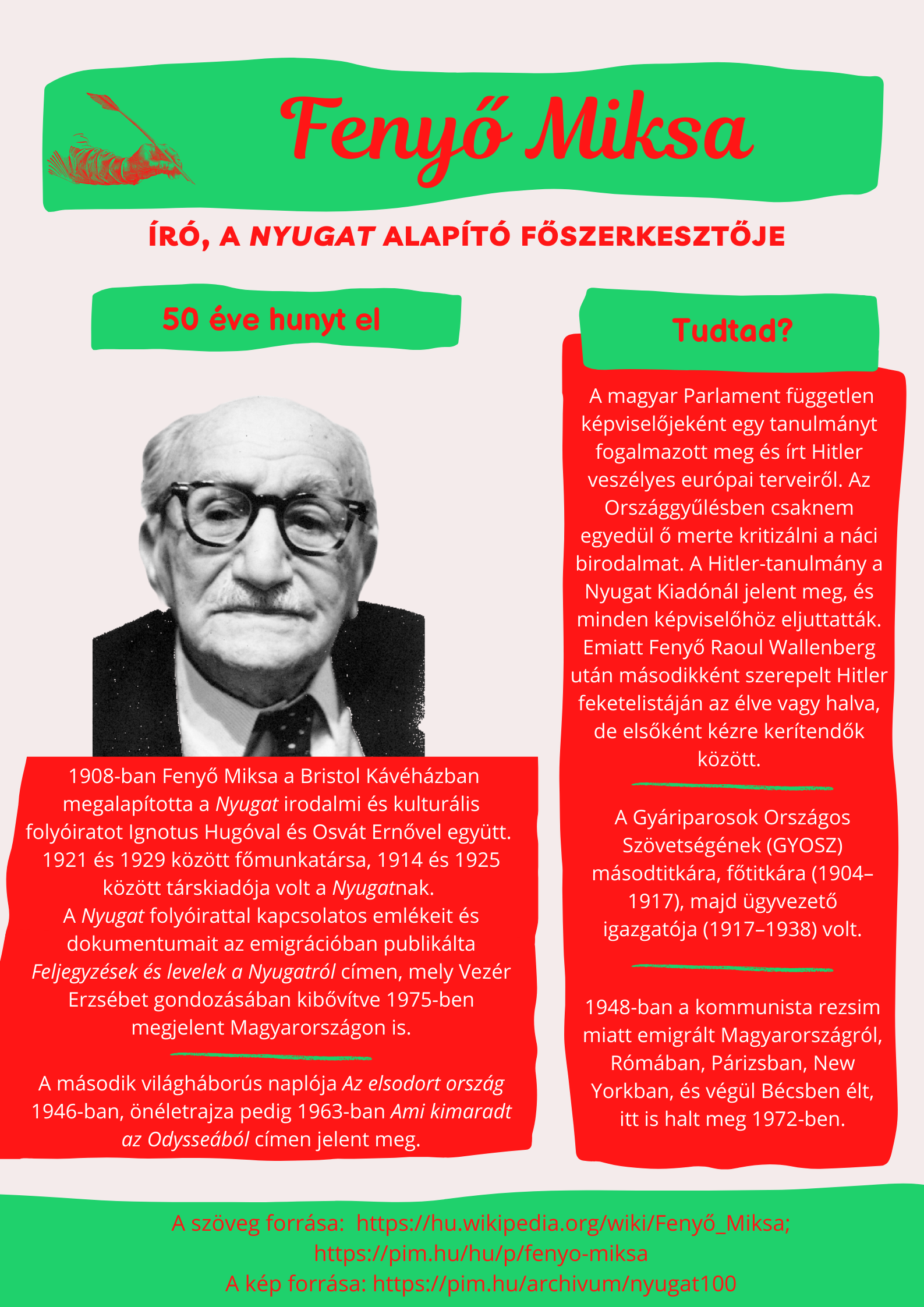 50 éve hunyt el Fenyő Miksa (1877-1972) író, a Nyugat alapító főszerkesztője
