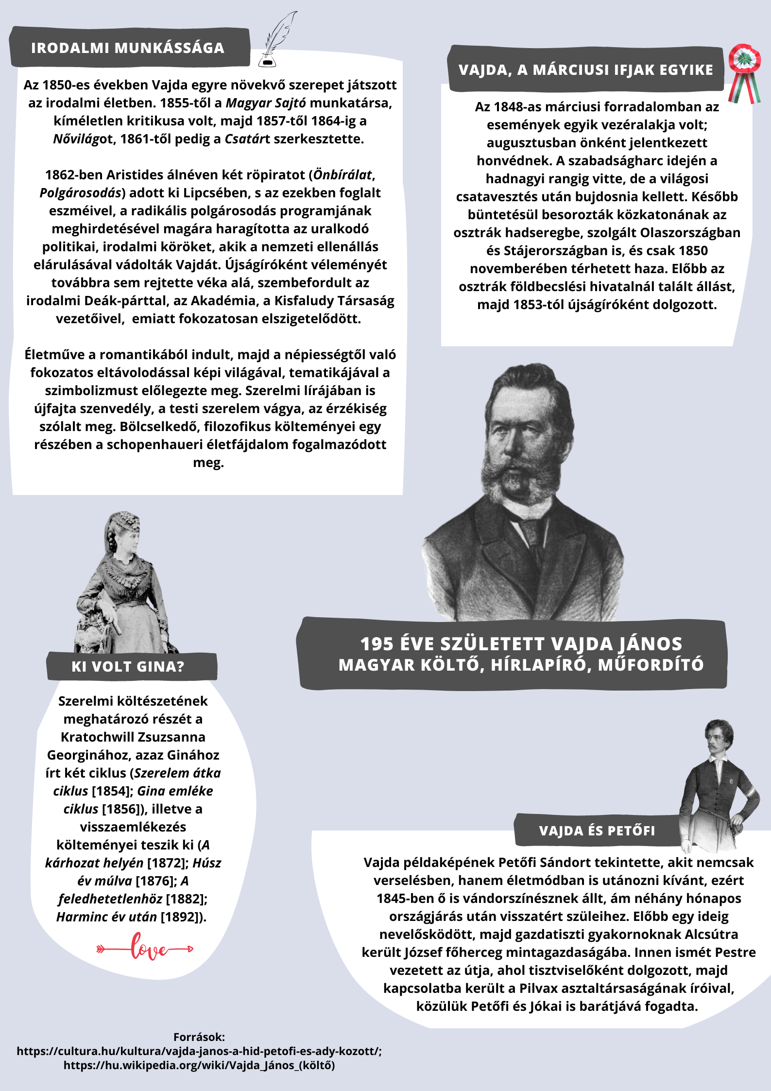 195 éve született Vajda János (1827–1897) a márciusi ifjak egyike, magyar költő, hírlapíró, műfordító
