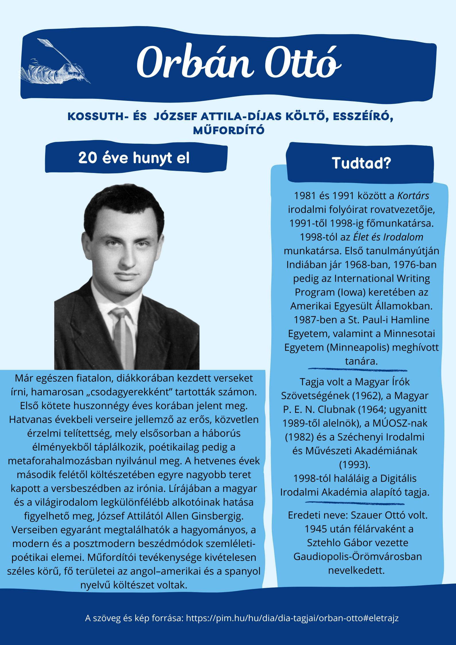 20 éve hunyt el Orbán Ottó (1936–2002) Kossuth-díjas magyar költő, esszéíró, műfordító
