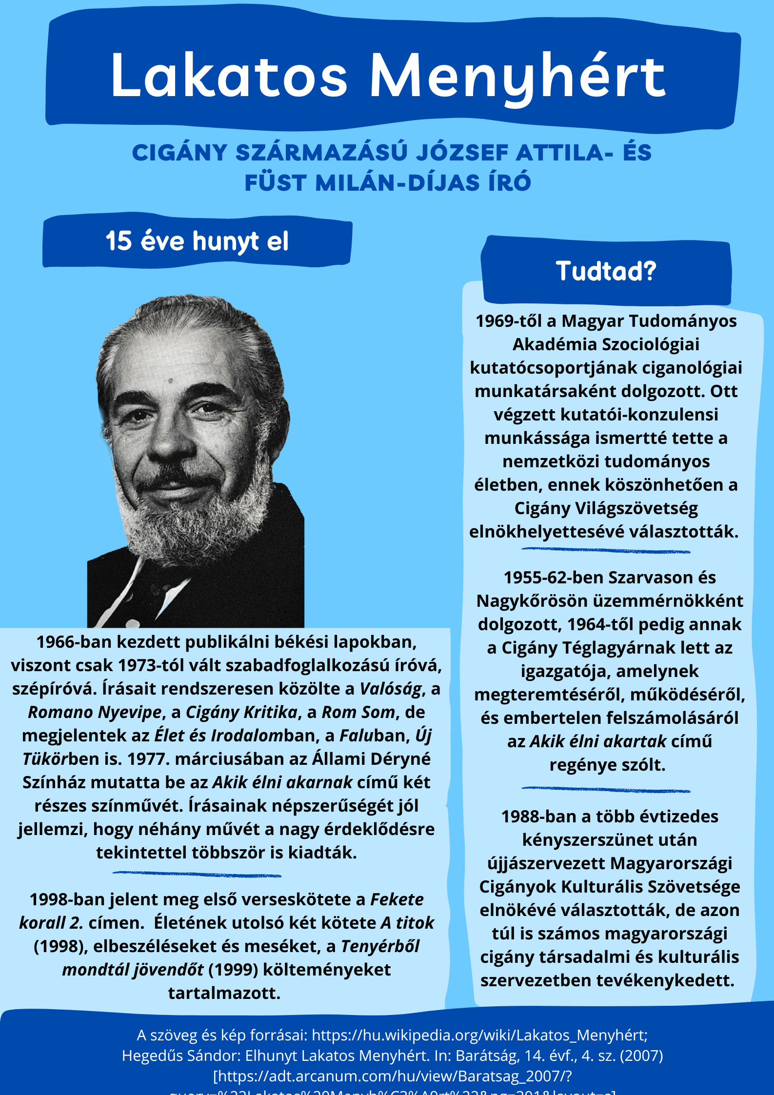 15 éve hunyt el Lakatos Menyhért (1926–2007) cigány származású József Attila-díjas író