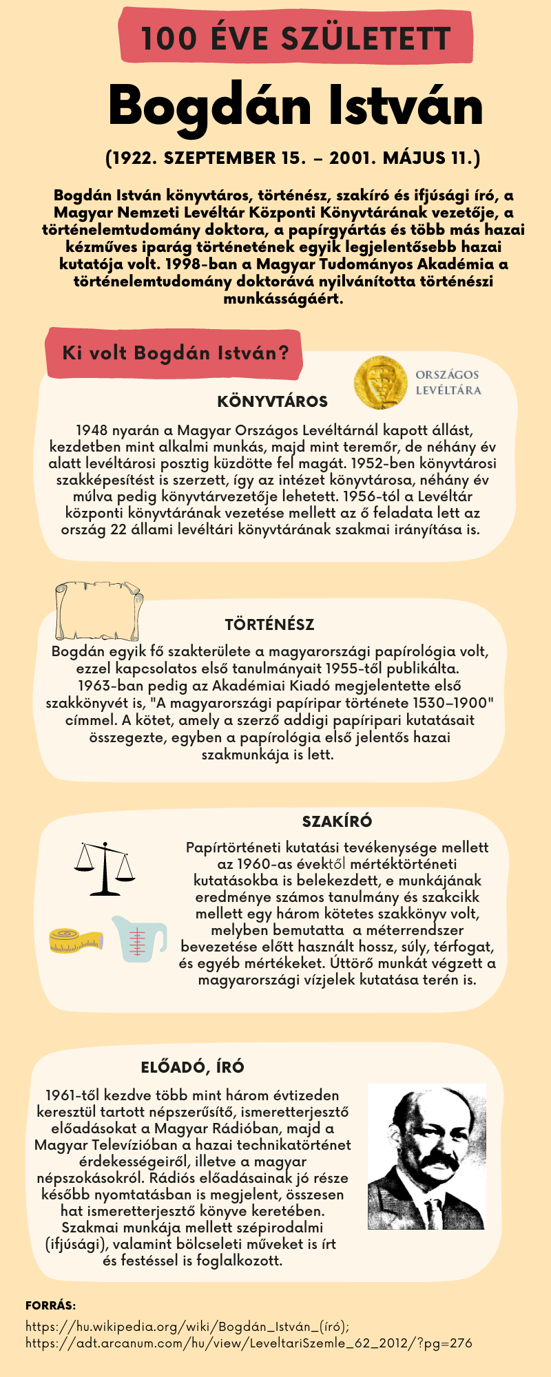 100 éve született Bogdán István könyvtáros, történész, szakíró, a Magyar Országos Levéltár Központi Könyvtárának vezetője