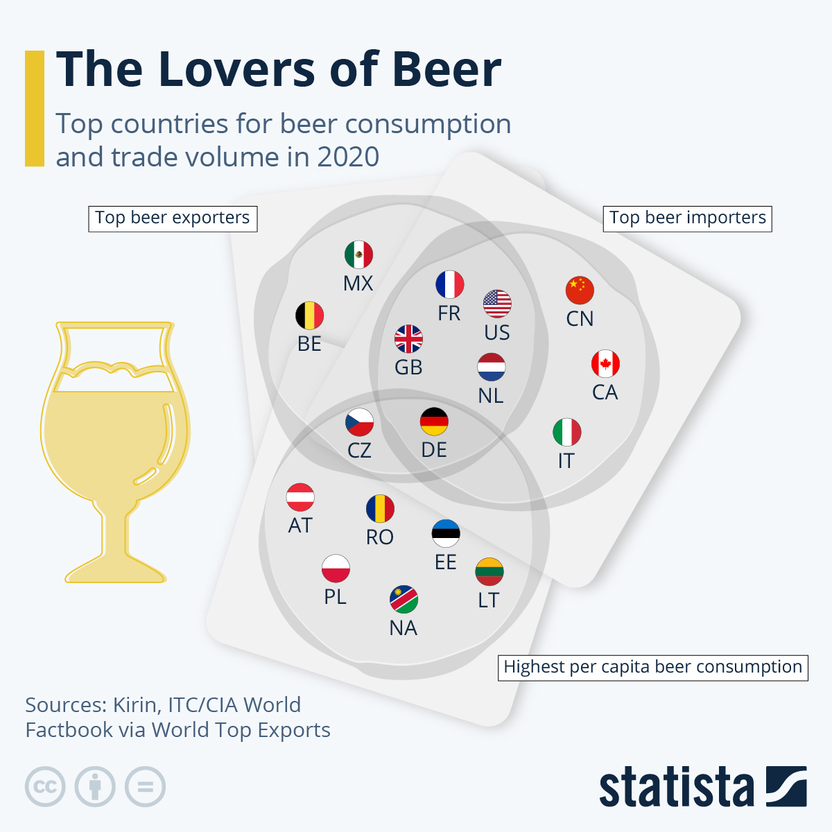 Egyes országok lakói szeretnek sört inni, míg mások a világ többi részét látják el sörük exportjával. Más nemzetek örömmel fogadják ezt, mivel érdekes módon az importsört részesítik előnyben a hazai sörrel szemben.