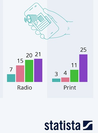 Az Amerikai Egyesült Államokban készült felmérés szerint okostelefonról, számítógépről, illetve tabletről a 18–29 évesek tájékozódnak elsősorban (71%). A tévét a 65 évnél idősebbek választják fő hírforrásnak (68%). Rádióból már nagyon kevesen szereznek információt, főleg az idősebb korosztály (annak is csupán 21%-a). A nyomtatott sajtó sem számít annyira népszerű hírforrásnak, ezt is elsősorban a 65 év felettiek preferálják (mindössze 25%-uk).