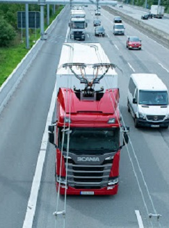Németországban az újonnan bevezetett villamosított autópálya tölti a hibrid tehergépkocsikat vezetés közben