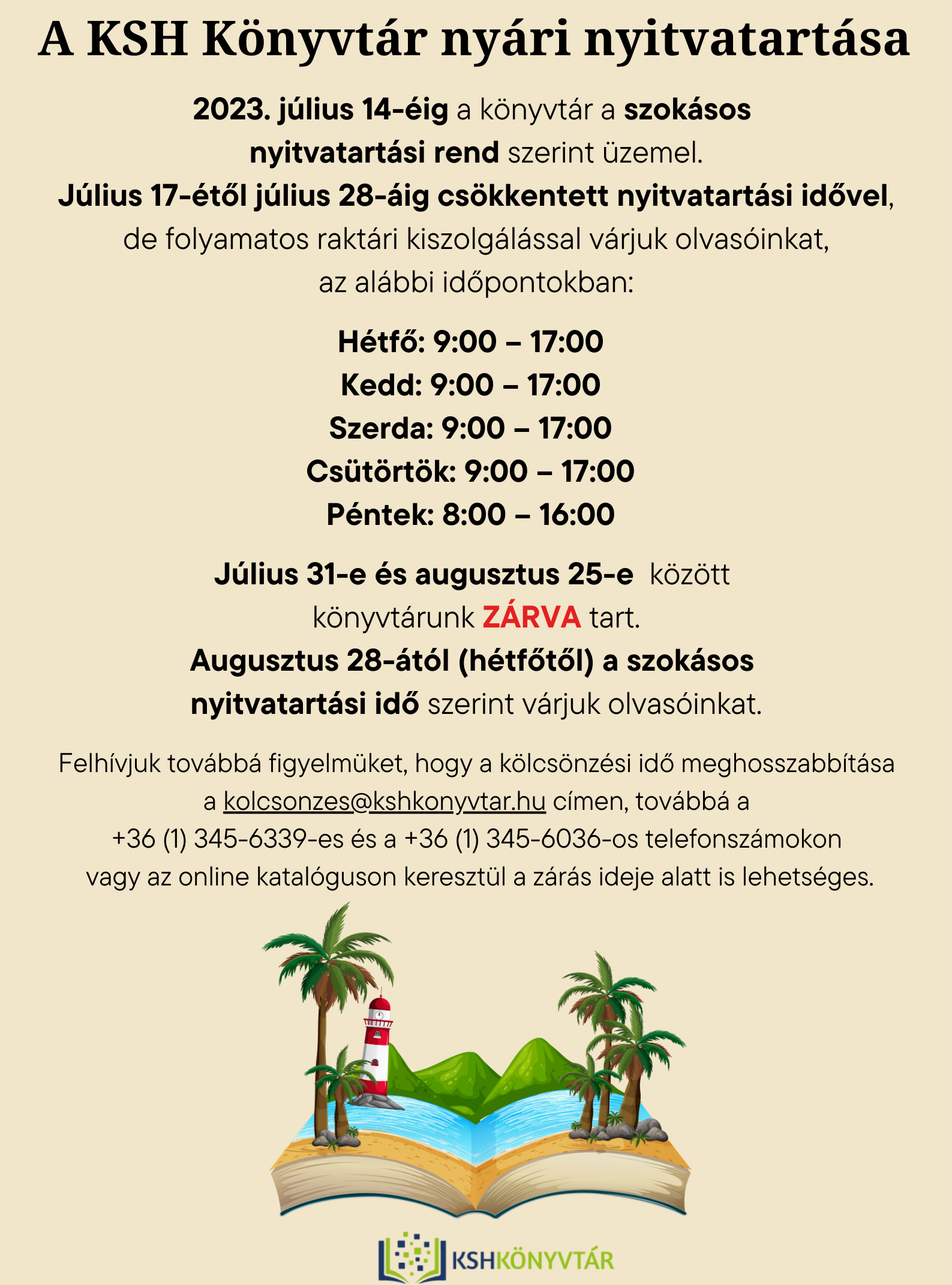 TovábbA KSH Könyvtár nyári nyitvatartási rendje