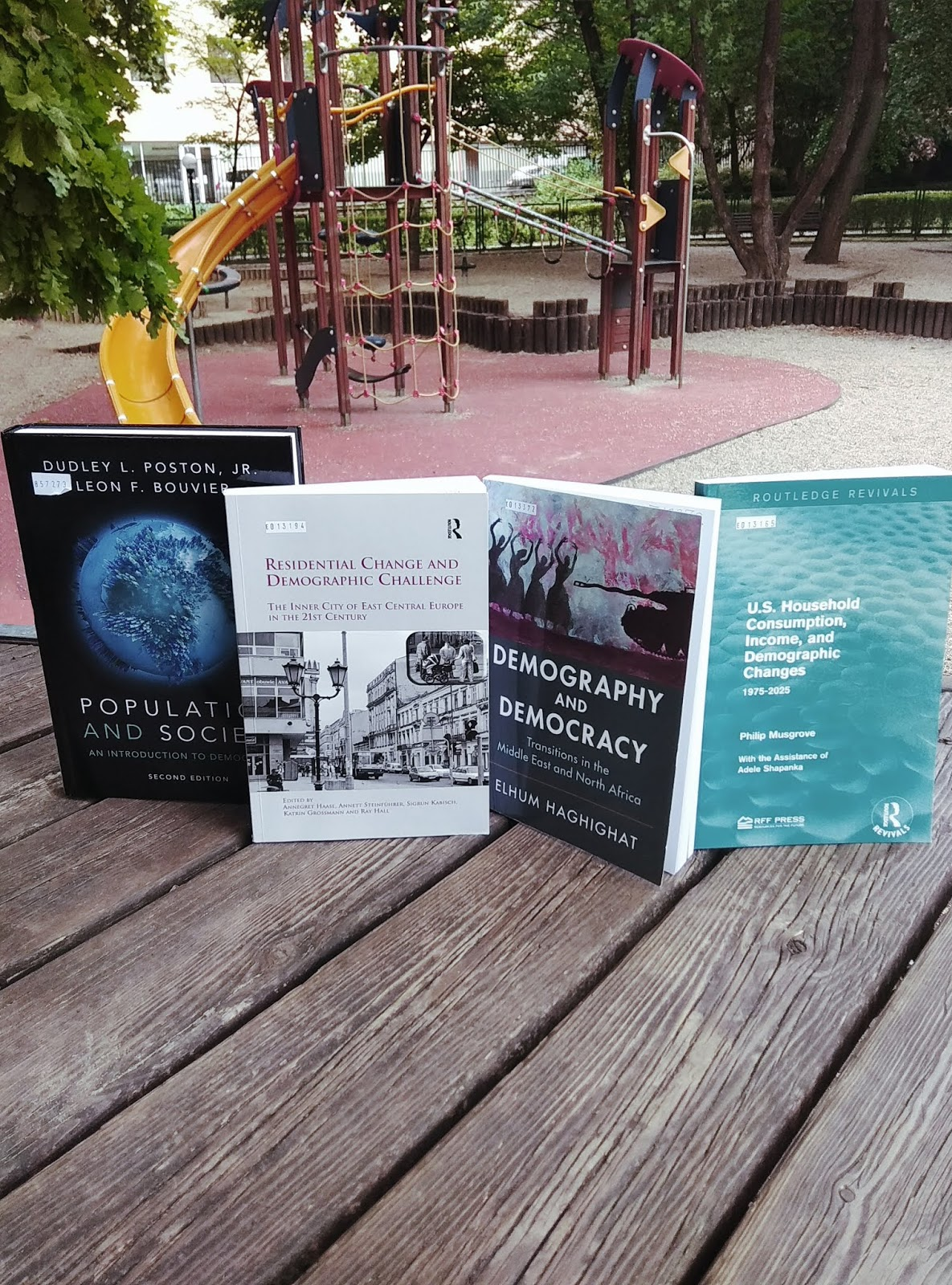 Demográfiai témájú könyveinket egy park játszóterére költöztettük. Ez az a helyszín, ahol minden korosztály megtalálható. Délelőttönként nagyszülők homokoznak a gyermekekkel, délután szülők csúszdáztatják a lurkókat. Esténként fiatalok ülnek be a hintákba, és az élet dolgairól vitáznak.