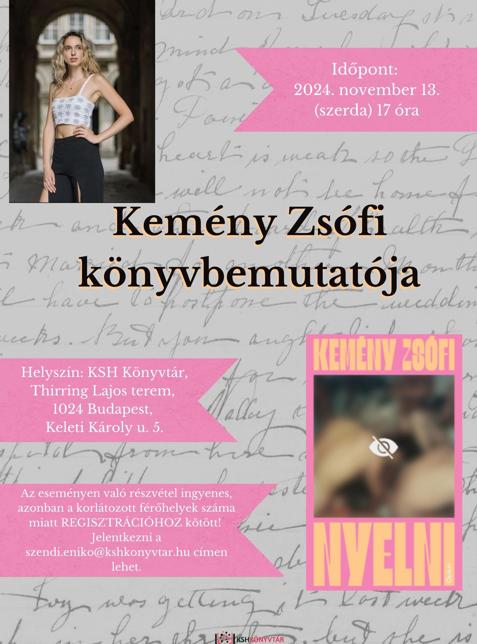 2024. november 13-án 17 órakor Kemény Zsófi mutatja be új könyvét a Könyvtárunkban.