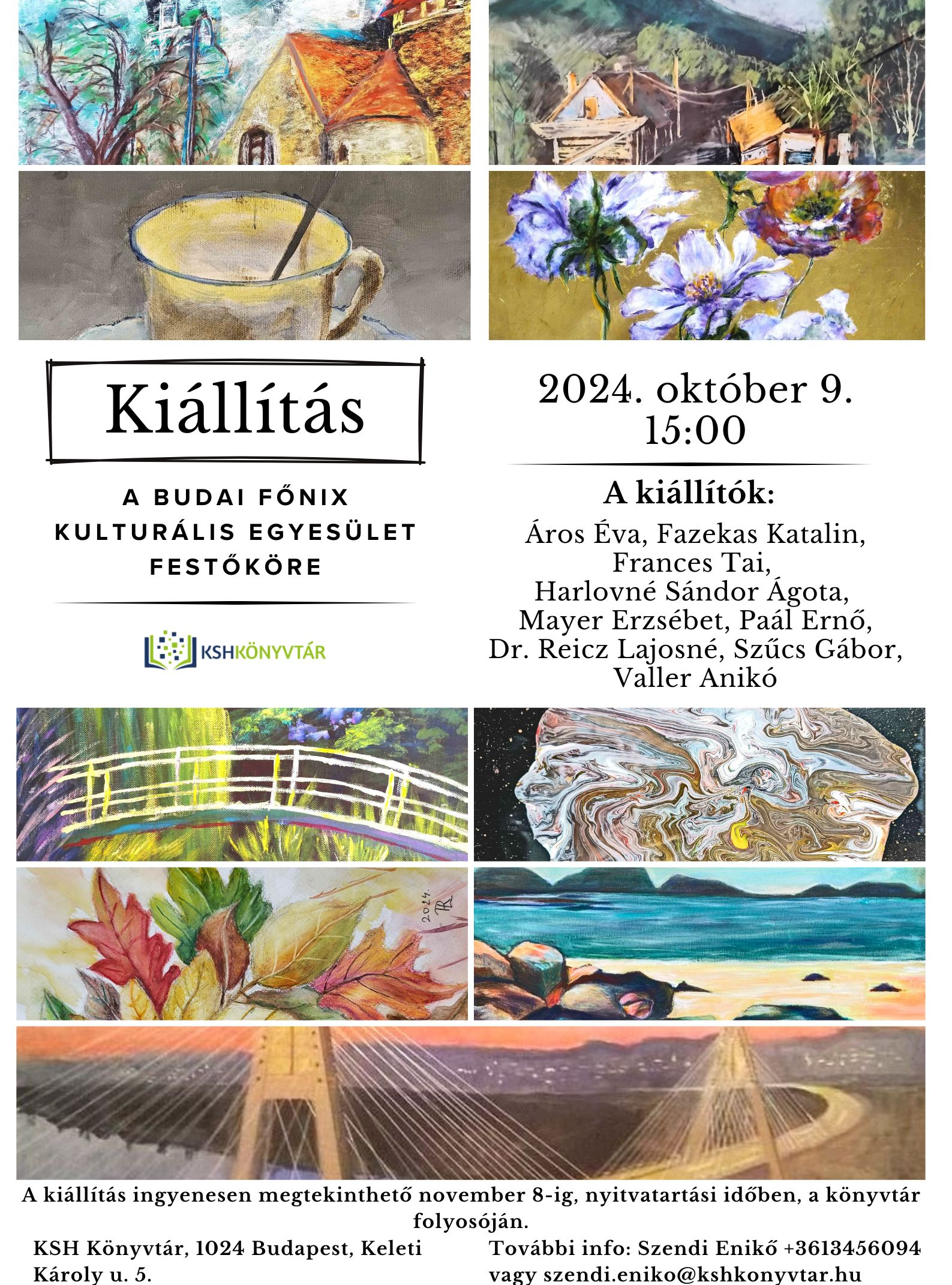Sok szeretettel várjuk az érdeklődőket a Budai Főnix Kulturális Egyesület festőköre tagjainak kiállítás megnyitójára.