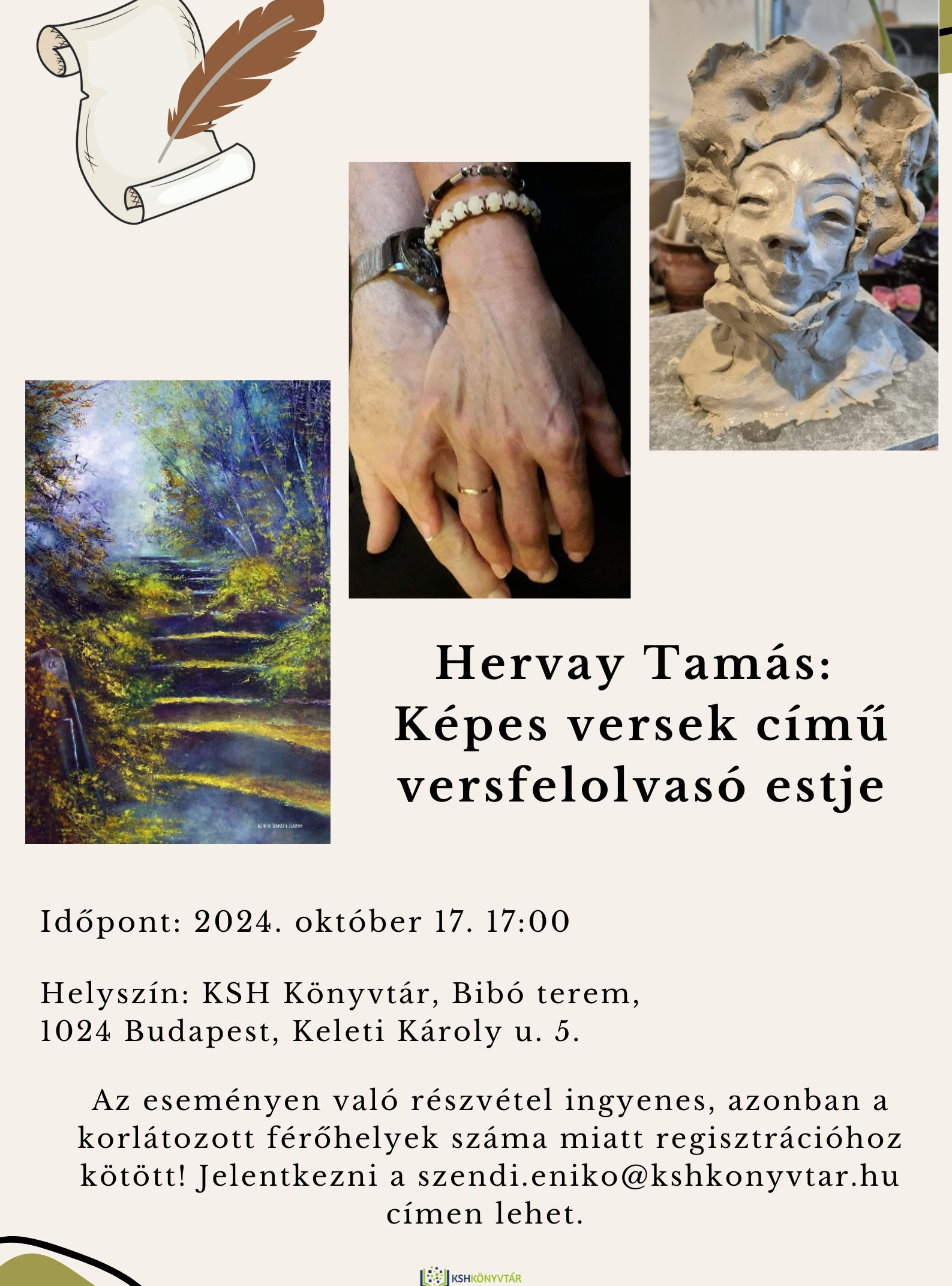 Az eseményen való részvétel ingyenes, azonban a korlátozott férőhelyek száma miatt REGISZTRÁCIÓHOZ kötött! Jelentkezni a #SSS#PGEgaHJlZj0ibWFpbHRvOnN6ZW5kaS5lbmlrb0Brc2hrb255dnRhci5odT9zdWJqZWN0PU1lc3RlcnMlQzMlQTlnZXMlMjBpbnRlbGxpZ2VuY2lhJTIwJUMzJUE5cyUyMGElMjBrJUMzJUI2bnl2dCVDMyVBMXIiPnN6ZW5kaS5lbmlrb0Brc2hrb255dnRhci5odTwvYT4=#EEE# e-mail-címen lehet.