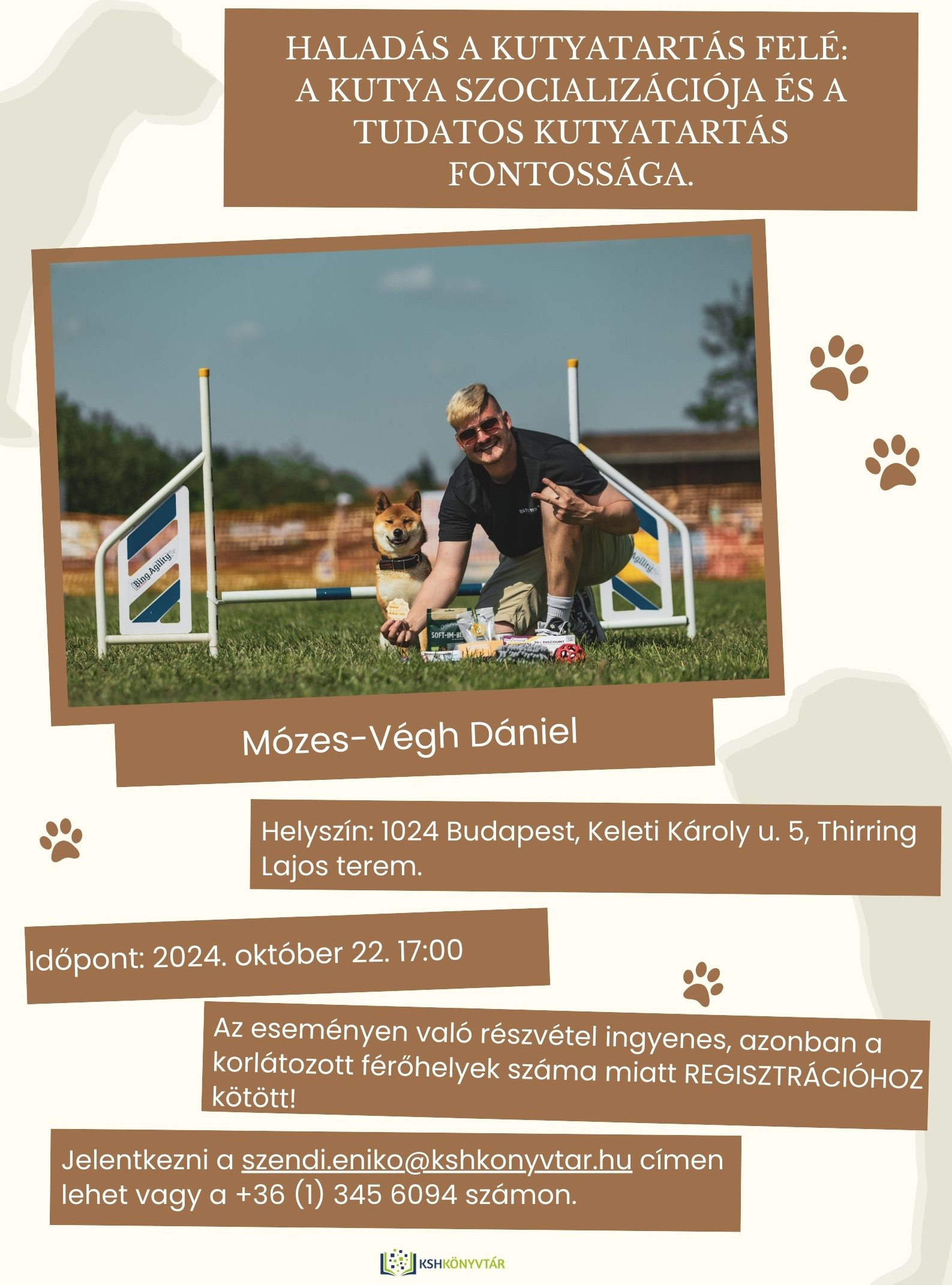 A második előadást Mózes-Végh Dániel fogja tartani, Haladás a kutyatartás felé: A kutya szocializációja és a tudatos kutyatartás fontossága címmel.