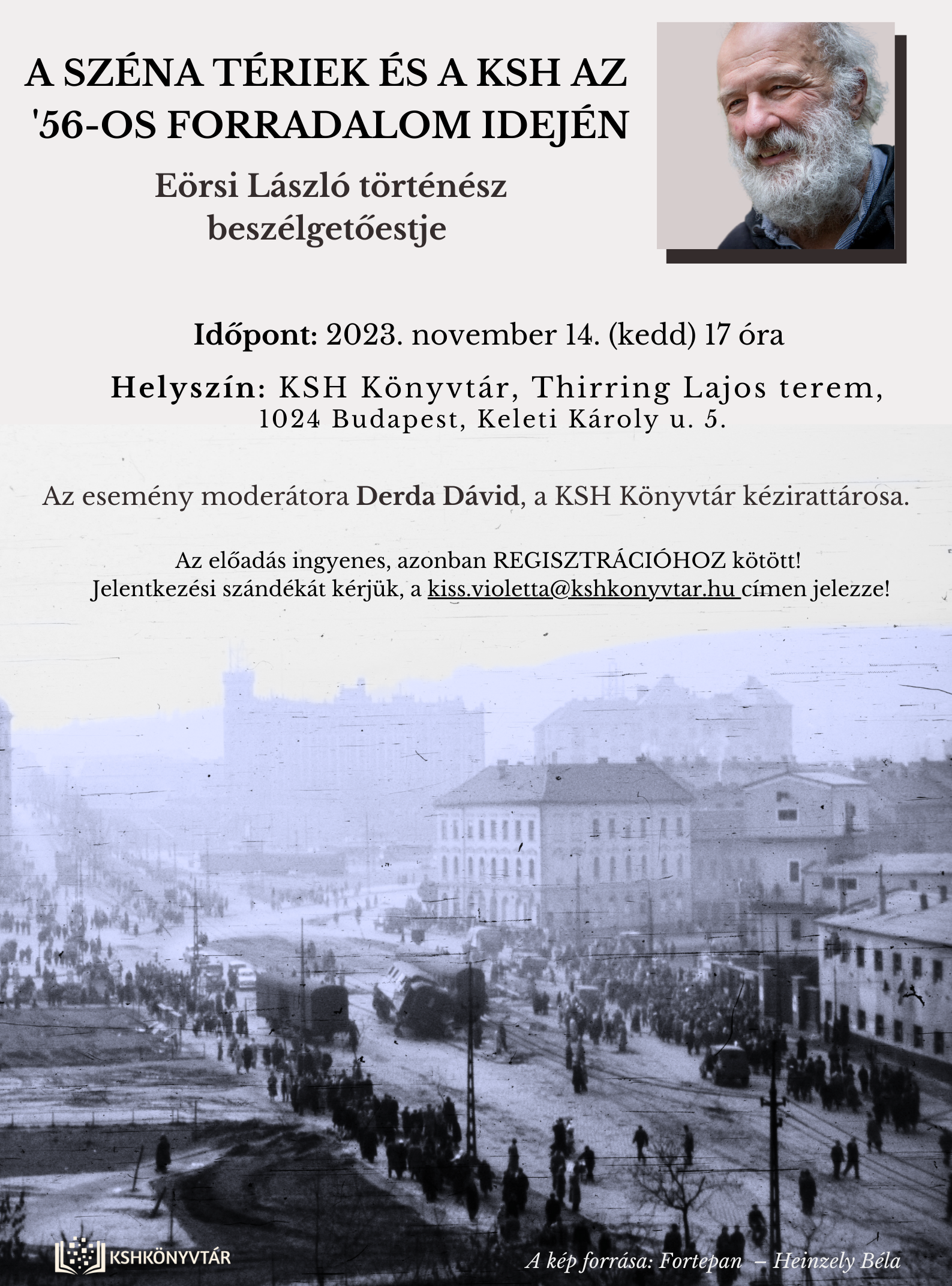 Sok szeretettel várjuk az érdeklődőket Eörsi László történész A Széna tériek és a KSH az ’56-os forradalom idején című beszélgetőestjére 2023. november 14-én (kedd) 17 órától!