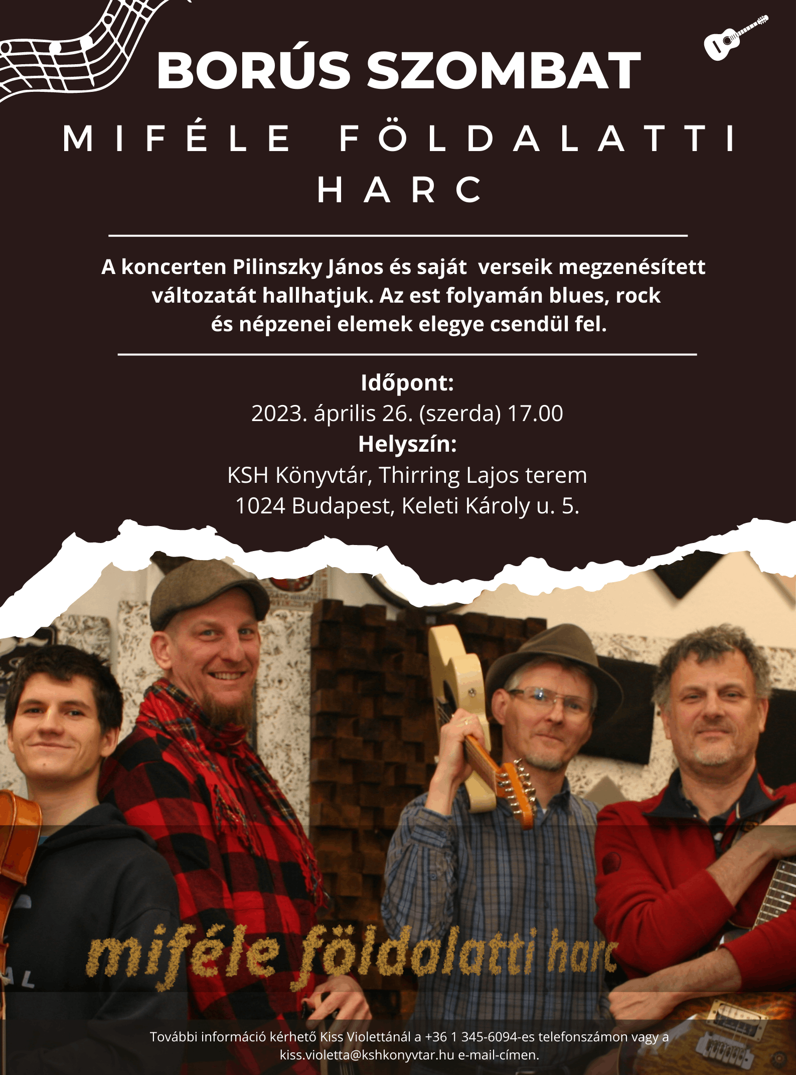 A Borús szombat zenekar Miféle földalatti harc című koncertjére szeretettel várjuk az érdeklődőket!