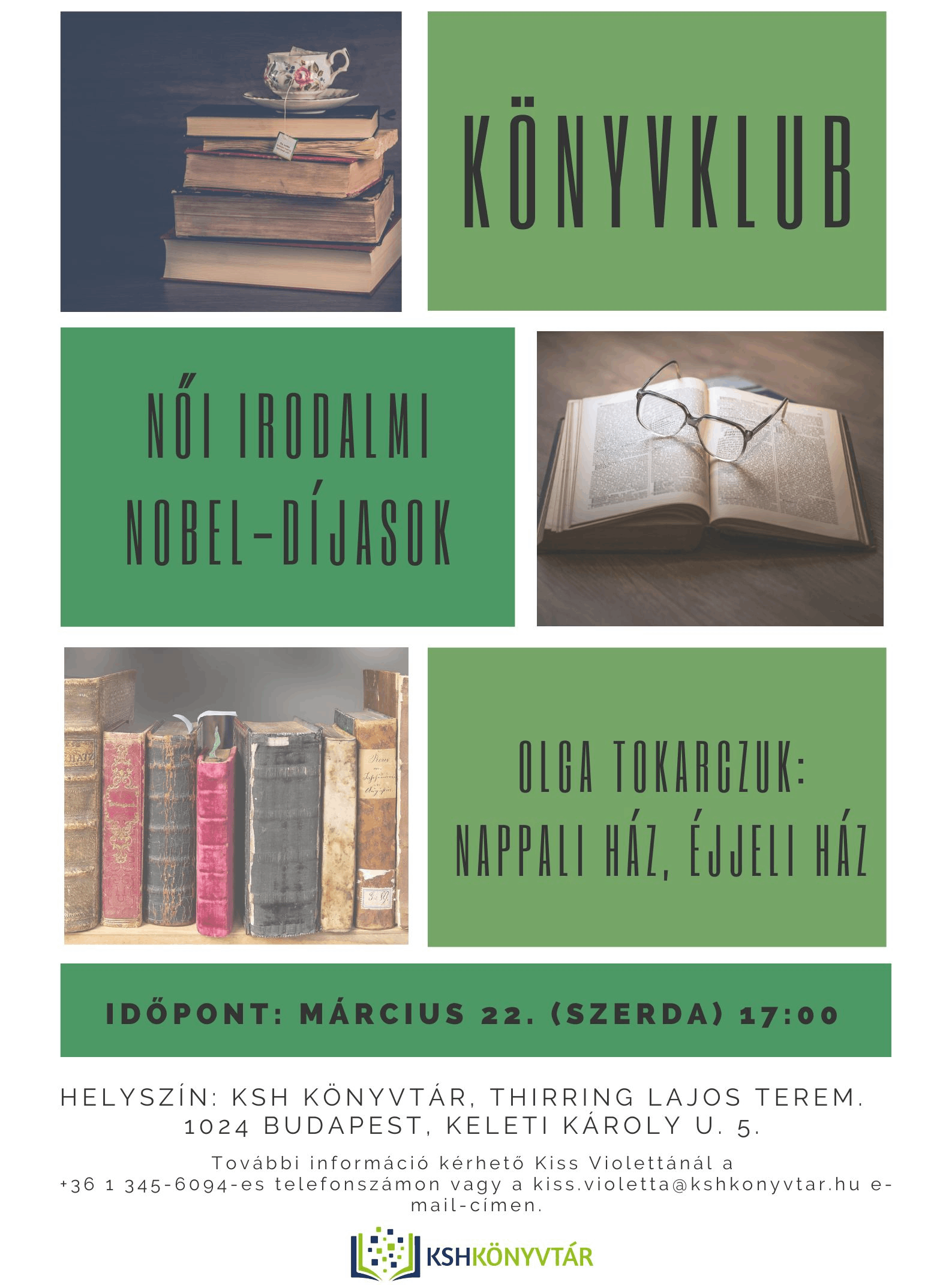A KSH Könyvtár könyvklubja sok szeretettel vár mindenkit 2023. március 22-én (szerda) 17:00 órától, Női irodalmi Nobel-díjasok címmel.