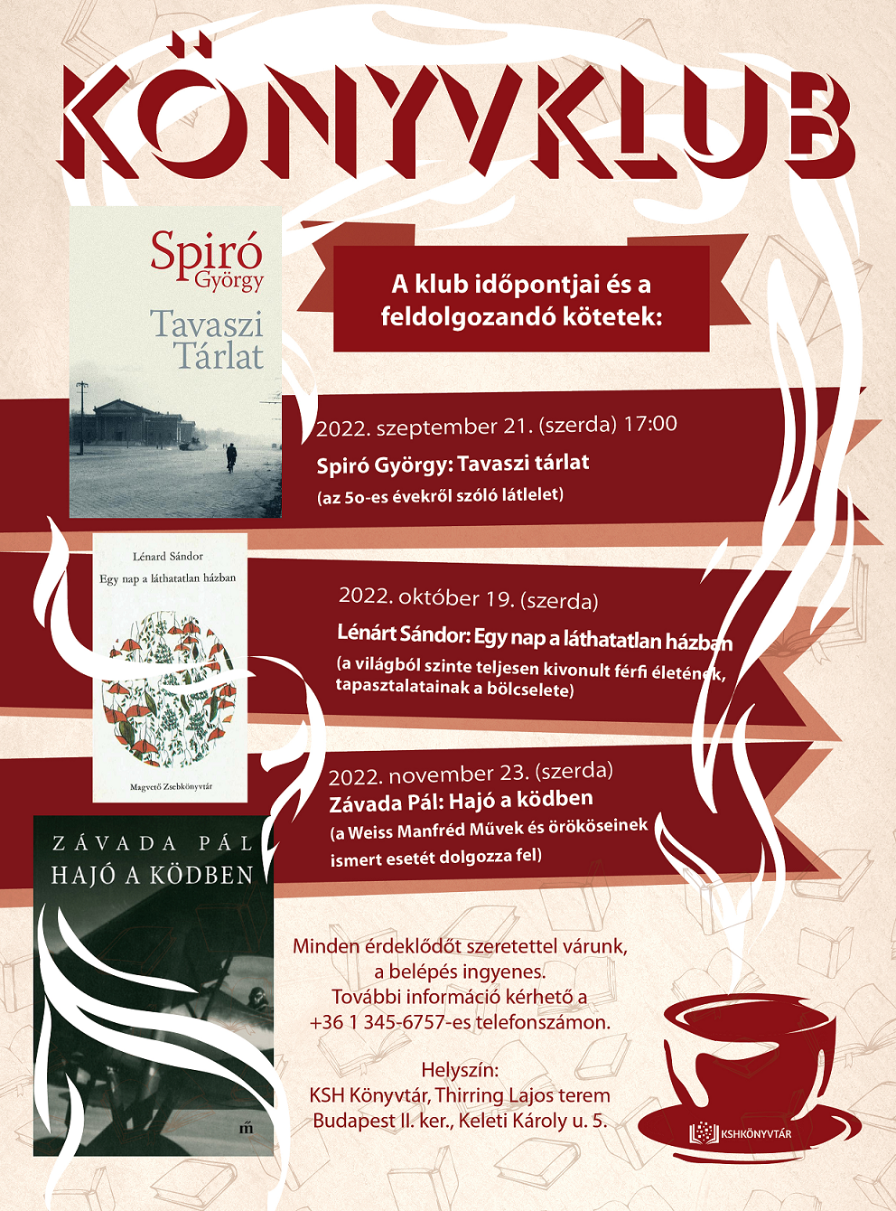 2022. szeptember 21-én (szerdán) 17:00 órától sok szeretettel vár mindenkit a KSH Könyvtár könyvklubja, „...nekem tetszett, szeretném veletek megosztani...” címmel!