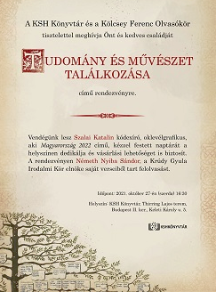 A KSH Könyvtár és a Kölcsey Ferenc Olvasókor  tisztelettel meghívja Önt és kedves családját a Tudomány és művészet találkozása című rendezvényre.