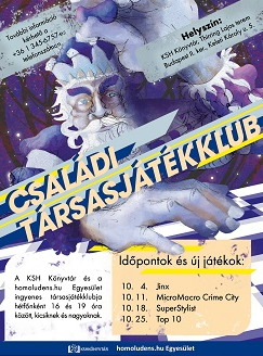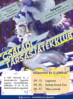 A KSH Könyvtár és a homolundens.hu Egyesület ingyenes társasjáték klubja hétfőnként 16 és 19 óra között, kicsiknek és nagyoknak.