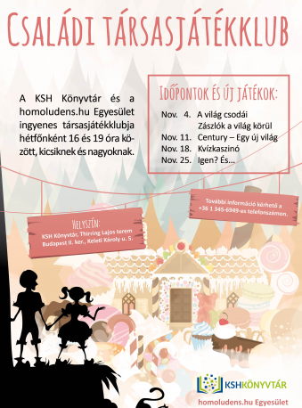 2020. 03. 02., 09., 16., 23., 30. Családi társasjátékklub a KSH Könyvtárban