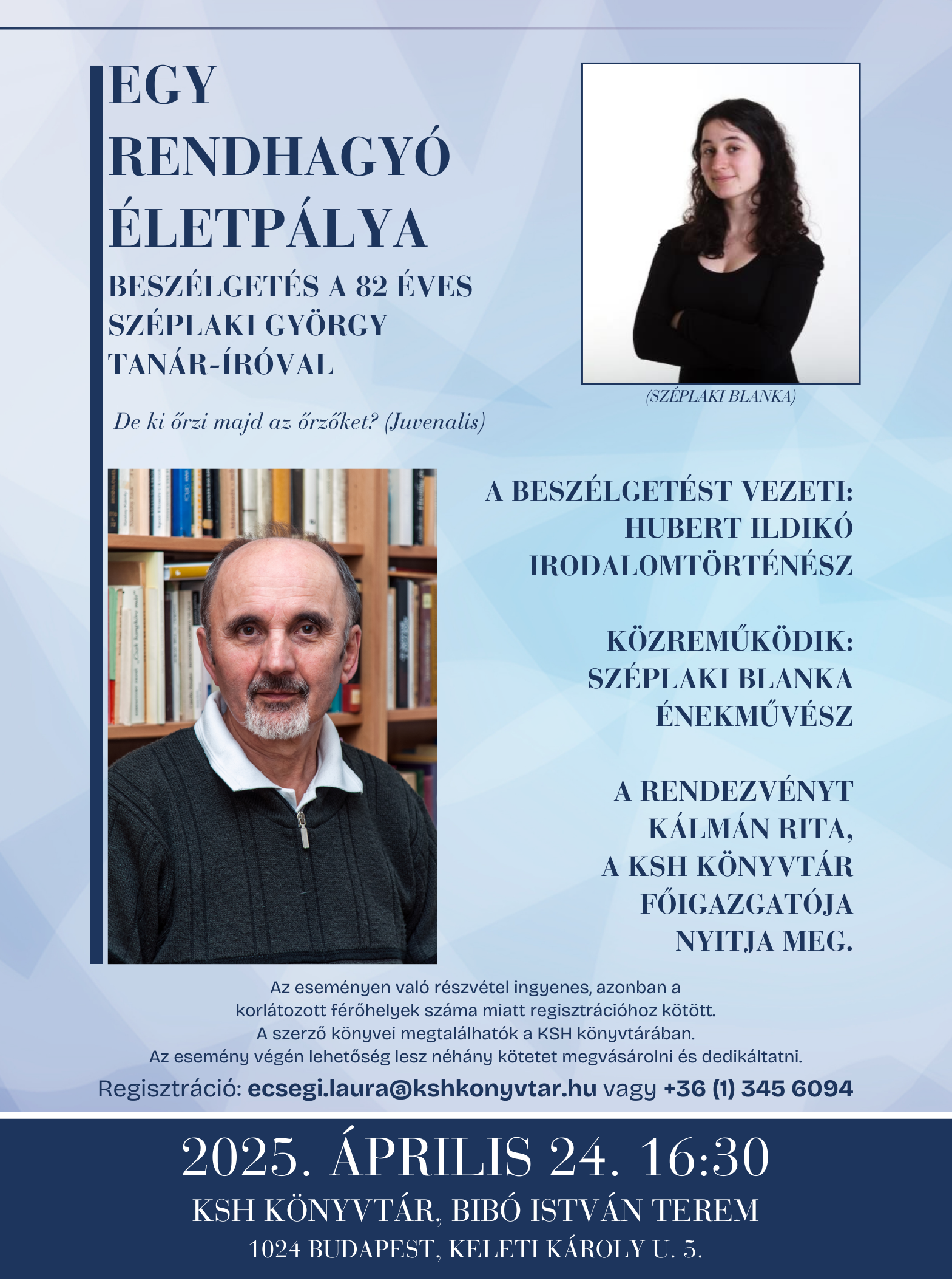 Szeretettel várjuk a kedves érdeklődőket egy beszélgetésre a 82 éves Széplaki György tanár-íróval!