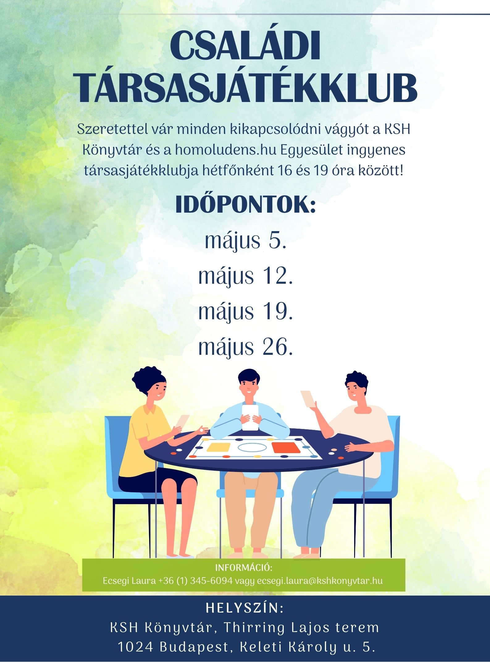 Ismét várja az érdeklődő kicsiket és nagyokat a KSH Könyvtár és a homoludens.hu Egyesület közös rendezésű családi társasjátékklubja hétfőnként 16 és 19 óra között!